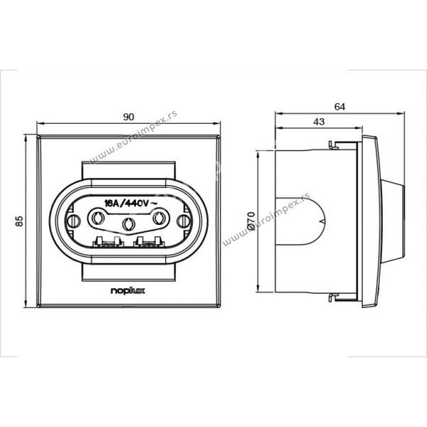 Tropolna priključnica 3P+N+E 16A 440V~, sa porcelanskim jezgrom