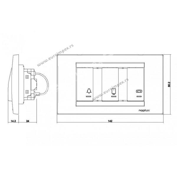 Sa montažnom kutijom PM4, dimenzije ugradne kutije 130 X 74 X 50 mm