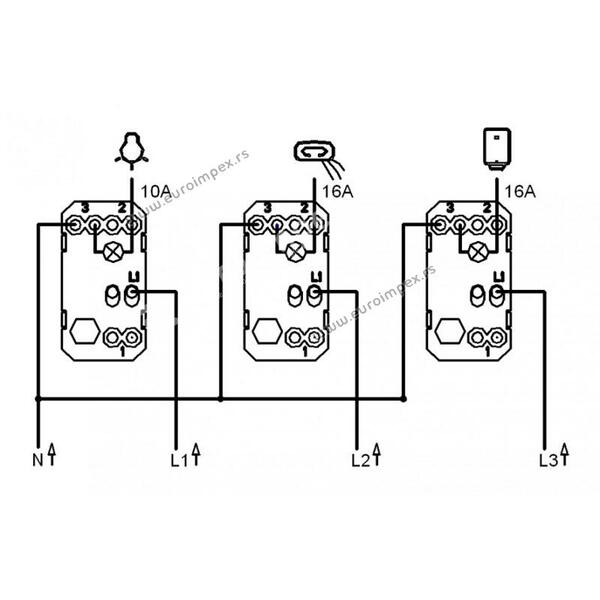 Sklopka za kupatilo sa indikatorom za tri nezavisna kruga 10AX/2 x 16AX 250V~