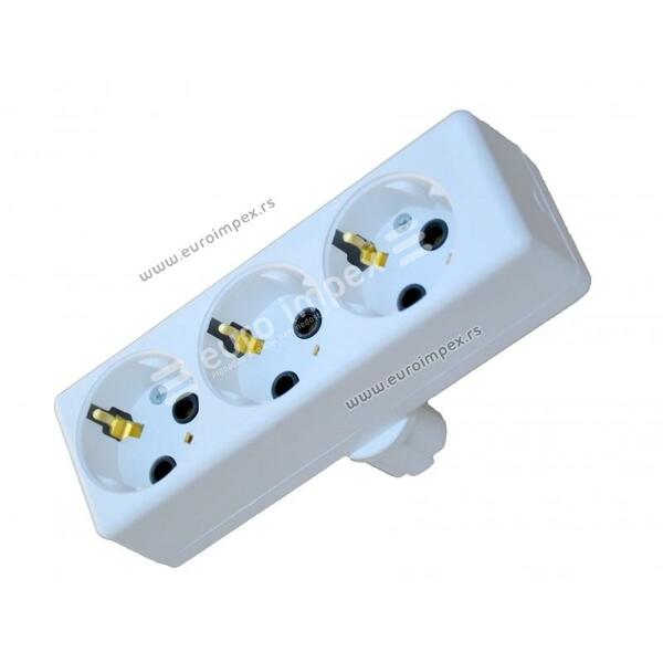 TROFAZNO MONOFAZNI RAZVODNIK 3x16A/250V je proizvod koji se koristi u elektricnim instalacijama gde postoje trofazne uticnice ( industrijske instalacije , kucne instalacije, škole, bolnice ....). Namena proizvoda je da u prostorijama gde su instalirane tro- fazne uticnice, a postoji potreba za monofaznim napajanjem upotrebom trofazno monofaznog razvodnika, elegantno bez pre- pravki na elektricnim instalacijama se to ostvaruje. Proizvod je tako koncipiran da se sa jedne strane nalazi trofazni utikac, a sa druge strane su tri monofazna uticna mesta pri cemu je svaka uticnica povezana na posebnu fazu. Ovo rešenje nudi mogucnost maksimalnog iskorišcenja postojece fiksne instalacije. Svako monofazno uticno mesto nudi mogucnost povezivanja potrošaca cija struja ne prelazi 16A ili 3500W. Proizvod trofazno monofazni razvodnik 3x16A/250V se radi u dve varijante sa i bez indikacije prisustva faza. Indikacija prisustva faza daje vizuelnu informaciju o postojanju faze za svako monofazno uticno mesto pojedinacno.