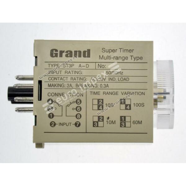 VREMENSKI RELEJ ST3P/A-D 10s/100s/10M/60M 220V/50Hz 8 PINA