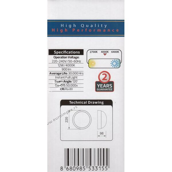 LED SPOLJNA (brodska) LAMPA 12W 4000K IP54 OKRUGLA