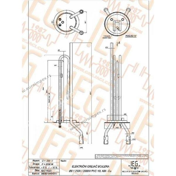 GREJAC BOJLERA 2000W fi8,1Cu 10l NM TERMORAD za PVC KAZAN NM ROGONJA IEGB283