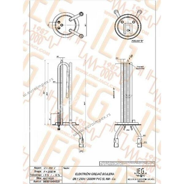 GREJAC BOJLERA 2kW 5L TERMORAD BT10 PVC NISKA MONTAŽA IEGTR025 IEGB285- ROGONJA