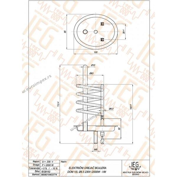 GREJAC ZA BOJLER 2000W DOM KOMPLET VM VISOKA MONTAŽA IEGB152