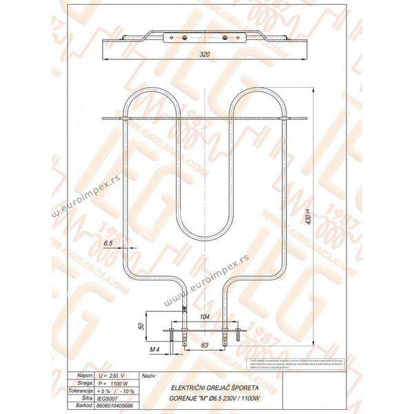 Grejac elektricnog štednjaka 1100W Gorenje u obliku slova M