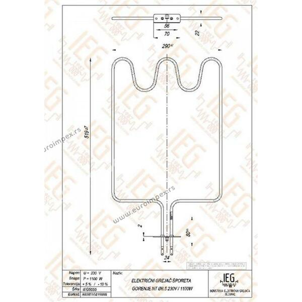 GREJAC ZA EL.ŠTEDNJAK 1100W NT GORENJE Aisi 316L fi 6,5mm IEGS055