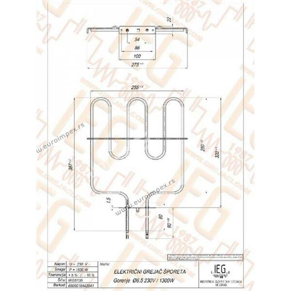 GREJAC ZA EL. ŠTEDNJAK 1300W Končar Elektrosan Aisi 304 IEGS135