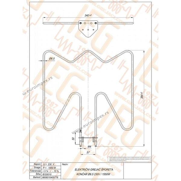 GREJAC ZA EL. ŠTEDNJAK 1550W Rade Koncar IEGS010 20215300.1