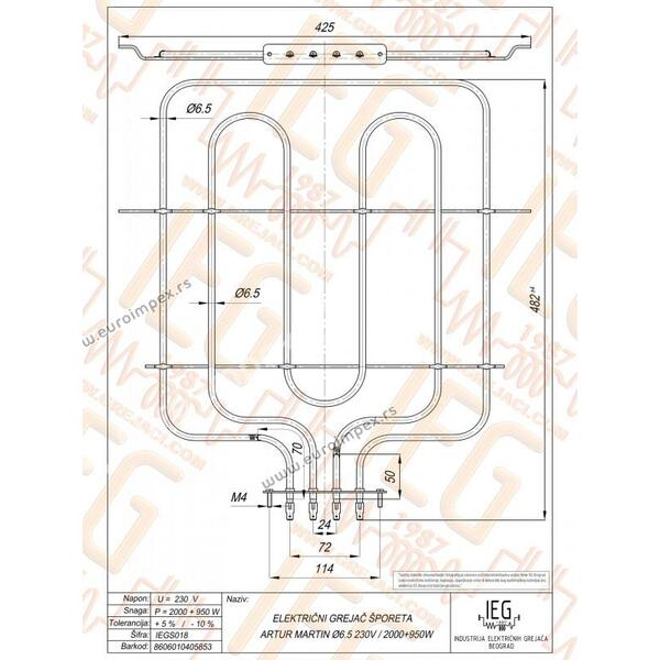 GREJAC ZA EL. ŠTEDNJAK 2000/950W AM ARTHUR MARTIN IEGS018 20201100.1