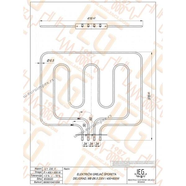 GREJAC ZA EL. ŠTEDNJAK 400/600W DELIGRAD IEGS020