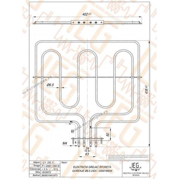 GREJAC ZA EL. ŠTEDNJAK 950/2000W SIRI Gorenje IEGS072 20206300.0