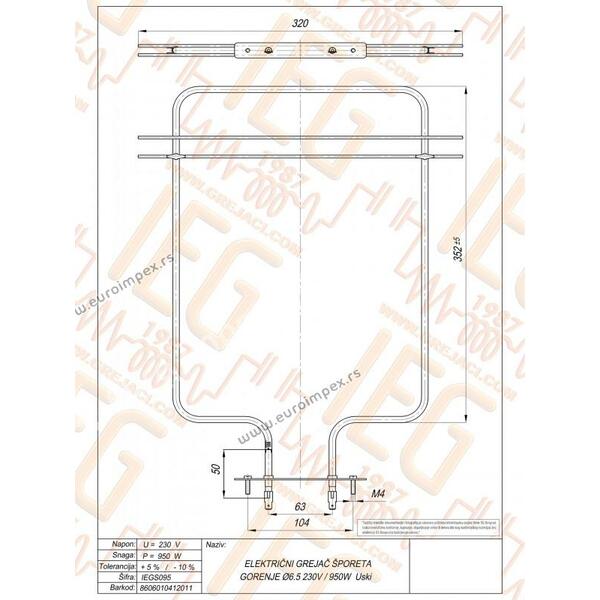 GREJAC ZA EL. ŠTEDNJAK 950W Gorenje IEGS095 20207300.1