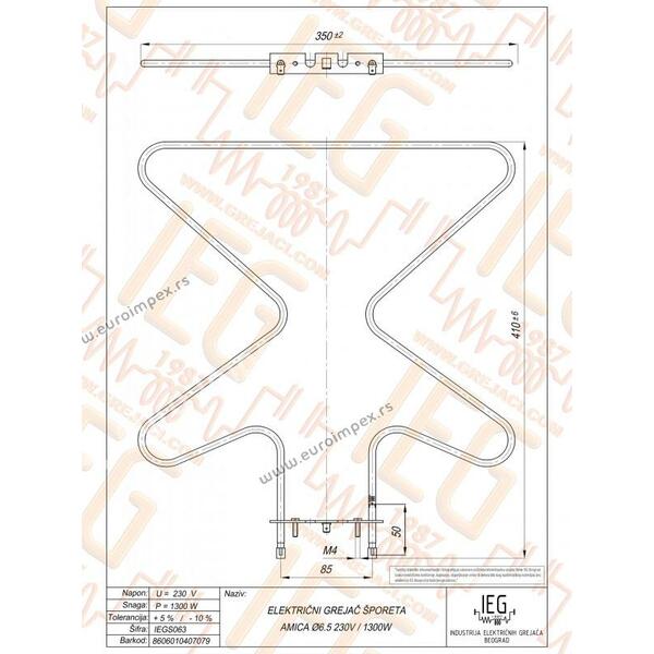 GREJAC ZA EL. ŠTEDNJAK AMICA 1300W IEGS063