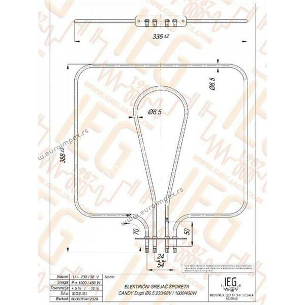 GREJAC ZA EL. ŠTEDNJAK CANDY DUPLI 1000W+450W IEGS101